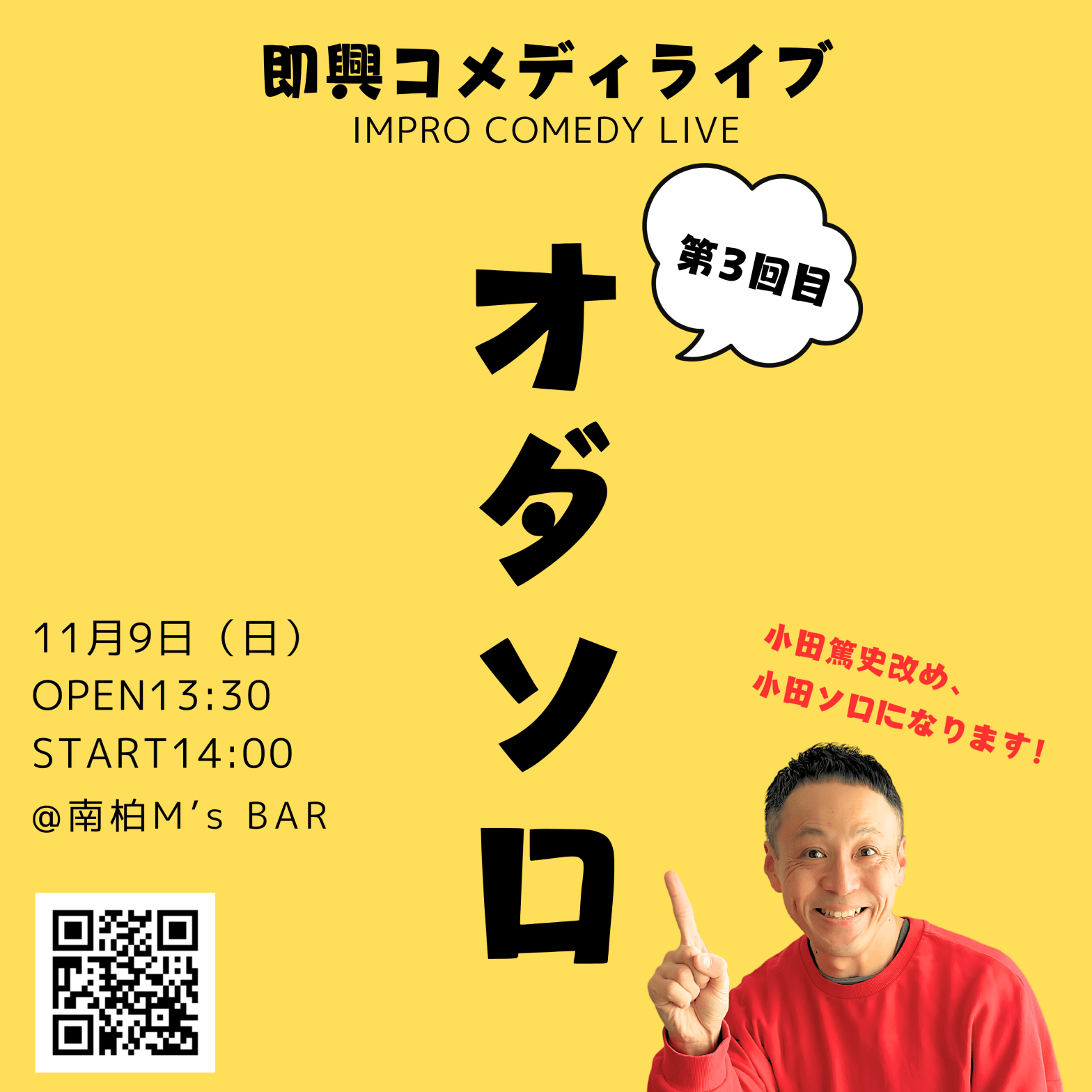 千葉・柏で開催している 1人即興芝居ライブ「オダソロ」3回目です。地元・柏の街で気軽にお芝居を楽しんでほしい―― そんな想いから始まった企画、第2回目です。小田篤史がひとりで喋り、語り、そして演じる「オダソロ」。リラック続きを読む “オダソロvol.3”
